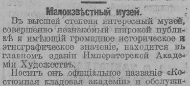 В 1918 г. училище было реорганизовано в Государственные свободные художественные учебные мастерские, которыми руководили Л. Н. Бенуа, Д. Н. Кардовский. А. А. Рылов, А. Т. Матвеев и К. С. Петров-Водкин. В 1921 г. мастерские переименовали в Высшие художественно-технические мастерские (ВХУТЕМАС), а в 1922 г. объединили с центральным училищем технического рисования барона А.Л. Штиглица в высший художественно-технический институт, просуществовавший до 1930 г. Из него выделили институт пролетарских изобразительных искусств. В 1932 г. он был реорганизован в институт живописи, скульптуры и архитектуры, получивший в 1944 г. имя И. Е. Репина. Это название сохранилось и до настоящего времени. Прямоугольное в плане здание со вписанным кольцеобразным корпусом и круглым двором. Между колонн портика у входа - статуи Геркулеса и Флоры. Отделка фасадов и внутренняя планировка относятся к разным периодам зодчества. Особо интересны парадные залы второго этажа, центральный круглый конференц-зал, домовая церковь, выстроенная по проекту К. Тона. ( по материалам: Даринский А. В. Высшие учебные заведения старого Петербурга.- СПб.: Фирма «Глагол», 2002)