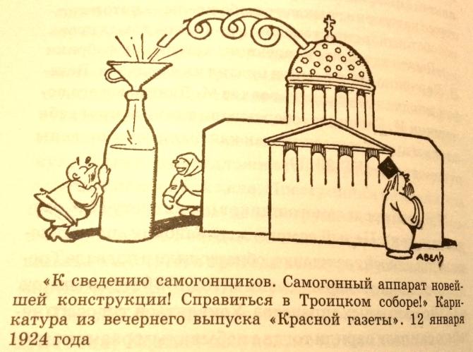 "Много в городе самогонщиков. Целый самогонный заводик, принадлежавший некоей гражданке, обнаружили в подвале Троицкого собора".