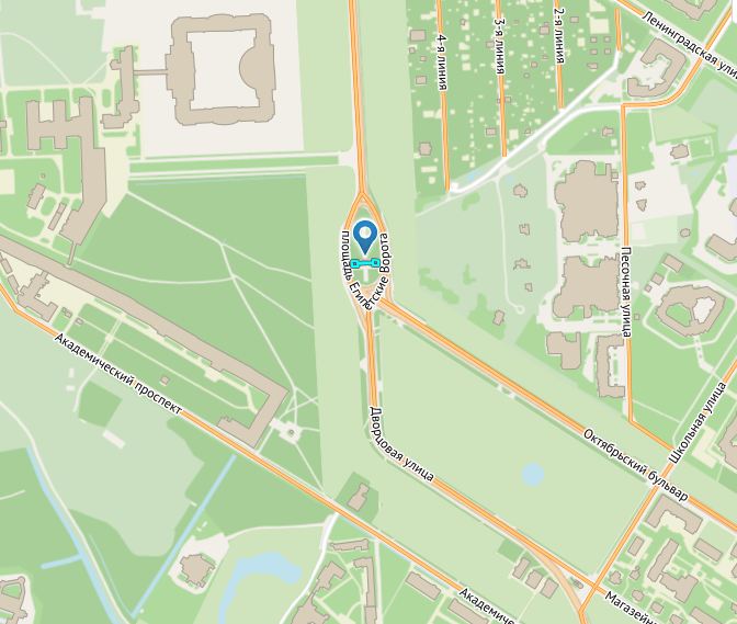 Египетские ворота находятся пересечении Дворцовой (ранее Кузьминской) улицы, Октябрьского бульвара и Петербургского шоссе. При взгляде на планы Царского Села середины XIX в. становится понятно, чем был обусловлен выбор места и как зародилась мысль о постройке Египетских ворот. Кузьминская дорога - один из трех лучей, сходившихся у Большого дворца (вторым лучом была центральная перспектива Нового сада и Зверинца, а третьим Подкапризовая дорога), - проходила вдоль границы Александровского парка. На северо-восточной окраине парка, у заставы на Кузьминской дороге, была распланирована круглая площадь, и на ней сооружены по проекту архитектора А. А. Менеласа Египетские ворота - своеобразные пропилеи при въезде в город со стороны Петербурга. Так на северной заставе появились пограничные городские ворота, представлявшие собой новый тип сооружений, сменивших простые деревянные будки-караулки. В отличие от триумфальных Московских, посвященных победе в Отечественной войне 1812 года, «северные ворота» являлись мемориальными.