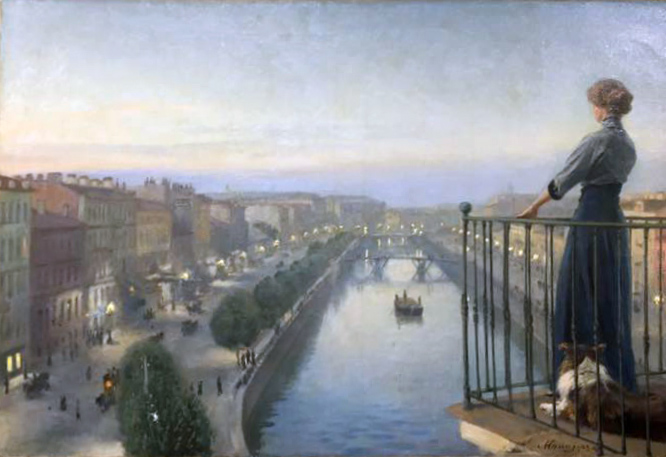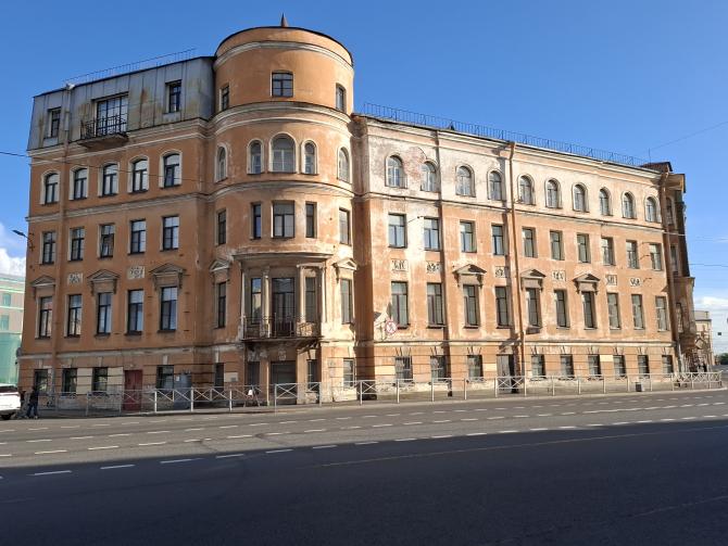 И. Е. Репин жил здесь, в доме №3-5, с сентября 1882 г., когда переехал из Москвы в Петербург, до 1895 г. Сначала он снимал квартиру №1 на втором этаже, а позже - №5. В первой квартире было семь комнат. Самая большая из них, угловая, служила мастерской, где еженедельно собирались друзья и ученики Репина. Частым гостем здесь был художник В. А. Серов. И. Е. Репин просил домовладельца надстроить здание, соорудить над ним мансарду. Это было сделано в 1887 г. В светлом помещении мансарды Репин создал ряд великих шедевров, среди которых «Крестный ход в Курской губернии», «Иван Грозный и его сын Иван», «Запорожцы пишут письмо турецкому султану», «Арест пропагандиста», «Отказ от исповеди» и другие картины. Здесь же, в квартире Репина, проходили заседания правления «Товарищества передвижных художественных выставок». (добавил -