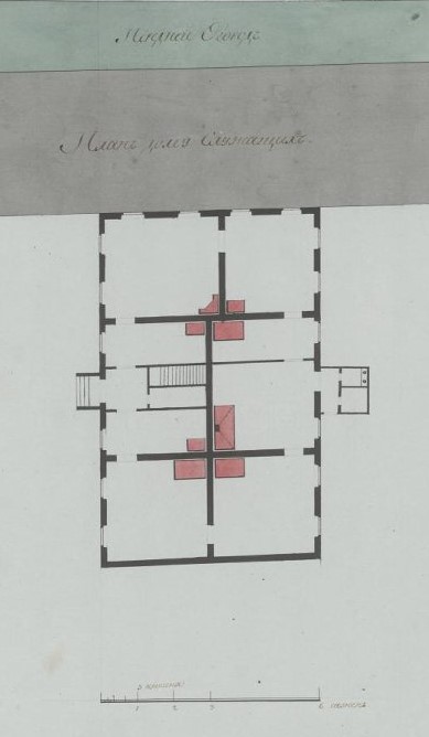 Дом для служащих при Оспопрививательном доме близ Сампсониевского моста (быв. дом английского консула барона Вульфа) в Петербурге. План. Середина XIX в.
