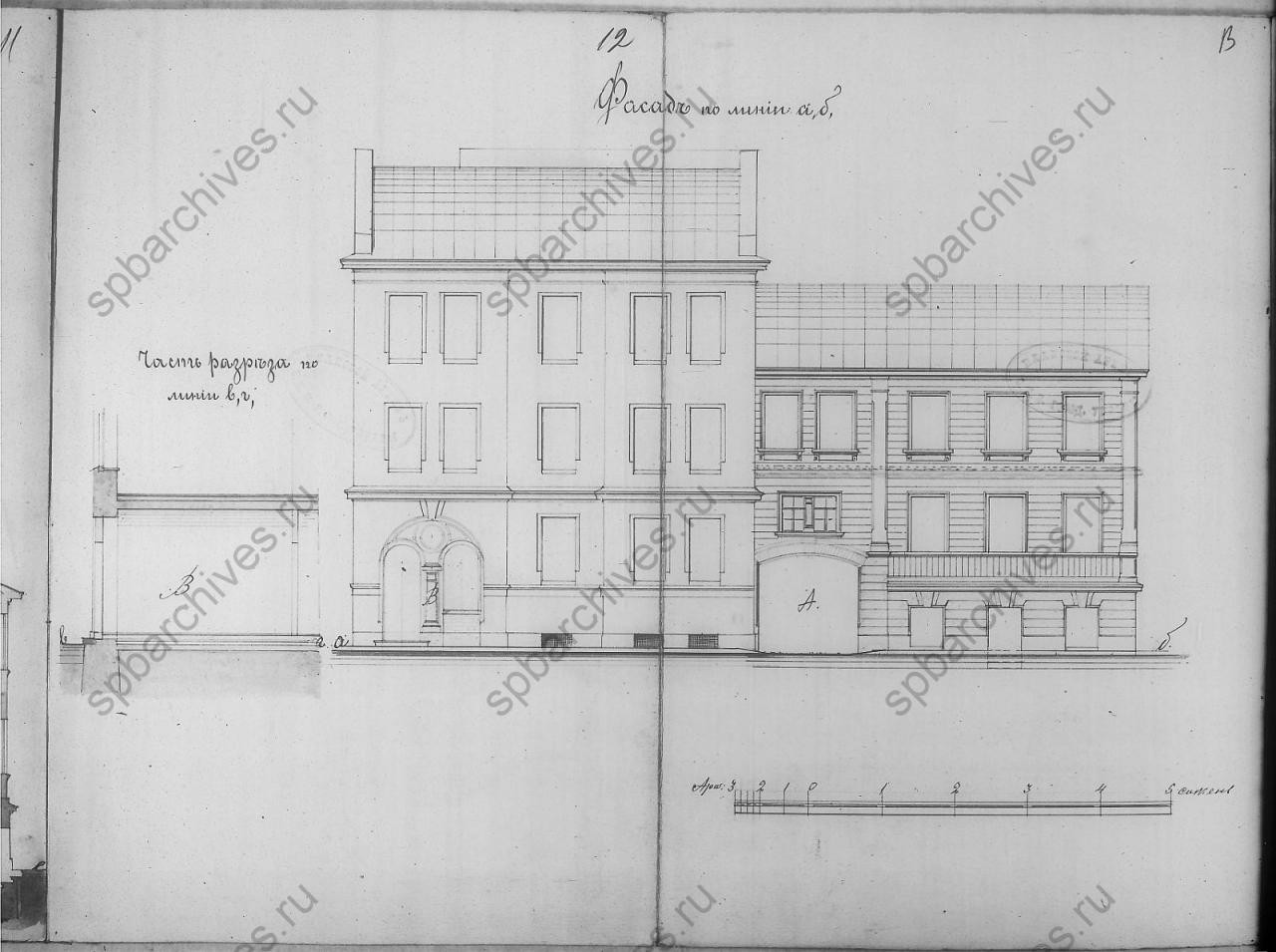 Чертежи дома на участке, принадлежавшем Е. Кондратьевой, В. Я. Котенькову по Малой Разночинной ул., 6. 1850–1902. 14л. () Из материалов архивного дела Городской управы следует, что в 1900 г. владельцем участка № 6 по Малой Разночинной улице был Василий Яковлевич Котеньков. 19 мая 1900 г. владелец получил разрешение Городской управы на постройку каменного 3-х этажного, на нежилом подвале, лицевого дома. Проект дома подписал чертежник А. Волков (ЦГИА СПб. Ф.513. Оп.102. Д.8456. Л.4об). В Адресной книге Яблонского на 1900 г. (С. 180) указан чертежник Алексей Петрович Волков, проживавший в доме по Б. Разночинной ул., 3. Осенью 1902 г. было получено разрешение Городской управы на перестройку существовавшего ранее деревянного одноэтажного дома, находившийся справа от каменного дома, с устройством каменного нежилого подвала, надстройкой двух этажей и пристройкой каменной лестницы. Одновременно с этим разрешалось обращение воротного проезда в каменном доме в торговое помещение. Проект перестройки подписал техник Михаил Иванович фон Вилькен (Там же. Л.9об). Деревянный дом на каменном подвале ( - справа), очевидно, не сохранился. (Добавил )