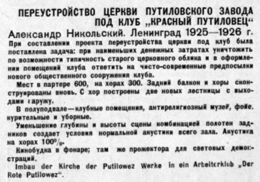 Переустройство церкви Путиловского завода под клуб "Красный пролетарий" Александр Никольский.