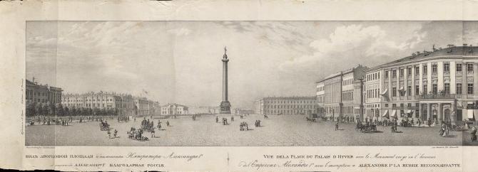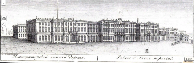 В начале XVIII века с восточной стороны Дворцовой площади находился дом Андрея Константиновича Нартова (1693 - 1756) - русского учёного, механика, изобретателя и скульптора, члена Академии наук (1723 - 1756). А здание Экзерциргауза (построенное в 1797-1798 гг. по проекту В.Бренны) - располагалось вдоль Миллионной улицы, одним торцом оно выходило на Зимнюю канавку, а другим - на Дворцовую площадь. Это был самый большой экзерциргауз в Петербурге. Он имел длину 252 м и ширину 35,7 м. В нем, по воспоминаниям современников, одновременно мог обучаться целый батальон. (Военный Петербург эпохи Павла I С. 34) В конце 1830-х гг. император Николай I предложил архитектору А. П. Брюллову, брату известного художника К. П. Брюллова, возвести на площади здание для Штаба Гвардейского корпуса, которому было тесно в аппартаментах Главного штаба. Здание строилось в 1837 - 1843 гг. и завершило архитектурный ансамбль Дворцовой площади. А. П. Брюллов также перестроил здание экзерциргауза, которое окончательно было снесено только в 1880 г. В 1880 г. был разобран экзерциргауз и на его месте в 1883 - 1884 гг. по проекту архитектора Х. И. Грейфана и военного инженера Д. В. Покотилова был построен