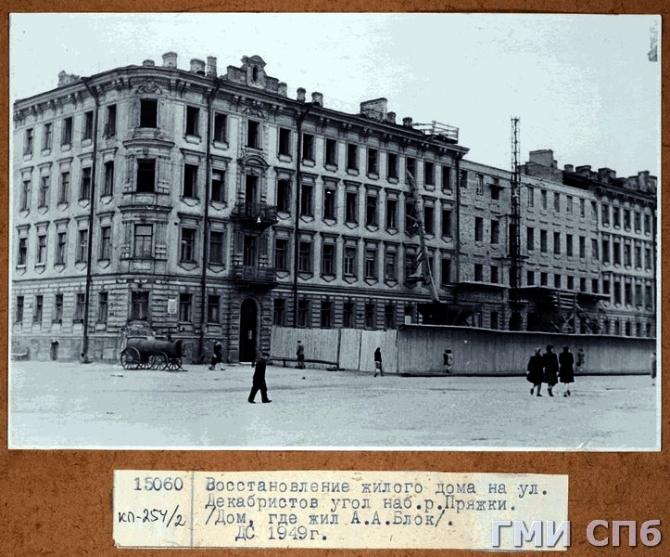 Восстановление жилого дома на углу ул. Декабристов и наб. р. Пряжки. Дом, где жил А. А. Блок.
