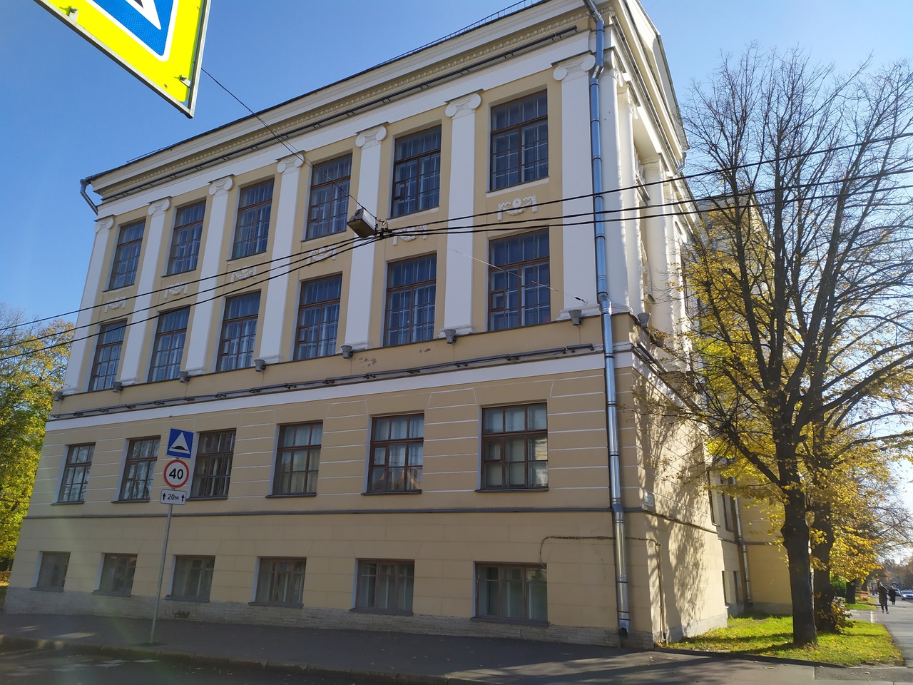 Царскосельская женская гимназия Неоклассицизм Пушкин. Пушкинская ул., 28 - Леонтьевская ул., 21 Пам. арх. (регион.) Женская гимназия ведомства Министерства Народного просвещения 1910-1912 - арх. (АХ) Бах Александр Романович (Робертович) ВОВ - пострадало 1950-е - восстановление с утратой декора