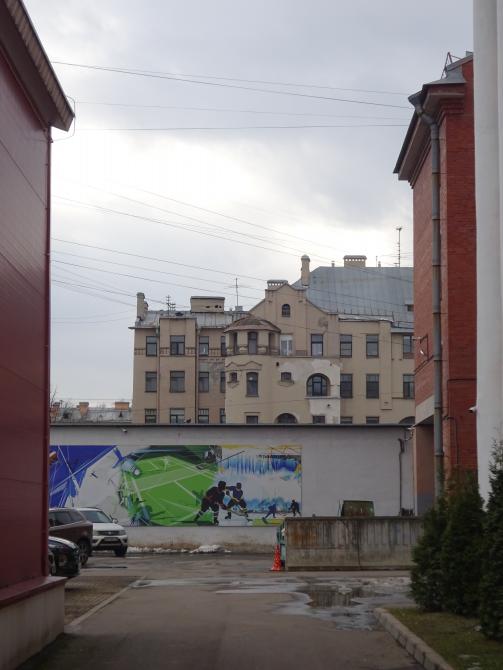 Вид со двора школы на северо-восточный фасад дома Б. Я. Купермана (https://www.citywalls.ru/house880.html)