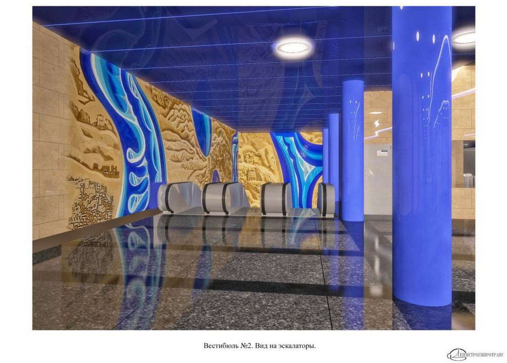 Комитет по развитию транспортной инфраструктуры (КРТИ) утвердил архитектурный проект будущей станции метро "Дунайская", которая строится на Фрунзенском радиусе. Архитекторы привязали свой проект к названию станции: волнообразные потолки со встроенными светильниками и синие оттенки в отделке должны вызывать ассоциации с волнами реки Дунай. Торцевые и боковые стены у эскалаторов будут украшены композициями из мозаичных панно и резного камня, а стена в центре станции, между путями - витражами из цветного стекла. На витражах будут изображены панорамы городов, расположенных вдоль Дуная - Вена, Братислава, Будапешт, Бухарест и другие. Для отделки использован светло-желтый мрамор и полированный гранит (стены, включая эскалаторные), белый мрамор (скамьи в вестибюле), гранит трех цветов (пол), синяя керамика (колонны). На "Дунайской" пути поездов будут находится посередине, а платформы - с двух сторон. Вестибюль станции будет связан с платформой двумя тоннелями, на каждом будет по три эскалатора. Лестничные спуски будут оборудованы траволаторами и накрыты входными павильонами. Предварительный архитектурный проект "Ленметрогипротранс" подготовил еще в 2013 г. Идея с синими цветами, волнами и витражами появилась уже тогда. Выход из "Дунайской" будет находиться между Дунайским пр. и ул. Олеко Дундича. Проектом предусмотрены два вестибюля с выходами через подземные пешеходные переход: на ул. Ярослава Гашека и на Дунайский пр. ("Деловой Петербург" dp.ru 25.03.2015)