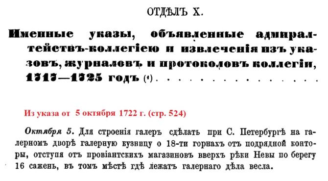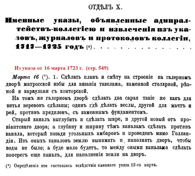 "За Крюковым каналом до 1740 года существовала “Верфь Галерная” для постройки галер, или “Старый Галерный Двор” (“Галерный Двор”), с “деревянными магазейнами”. “У Галерного Двора” (очевидно, за ним) в 1717 году был прорыт канал “вдоль Галерного Двора” (очевидно, параллельно Большой Неве)."