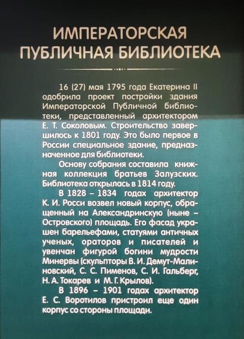 16 (27) мая 1795 года Екатерина Великая утвердила проект нашего первого здания, положив начало Императорской публичной библиотеке.