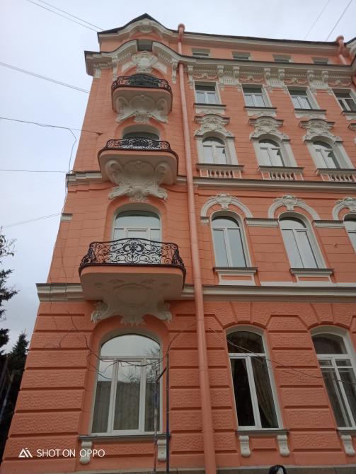Заканчивается реставрация этого интересного фасада. Какая красивая лепка была до прихода более ранних реставраторов. Но могу сказать,что и сейчас дом выглядит красиво.